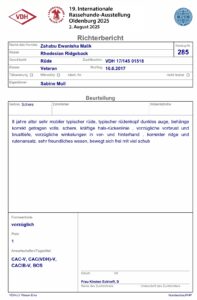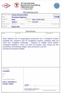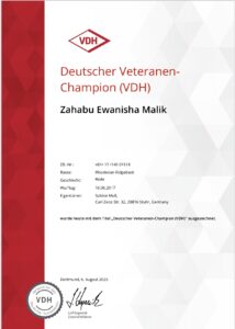 Somit hat Malik die Voraussetzungen fΓΌr seinen VDH – Veteranenchampion erfΓΌllt